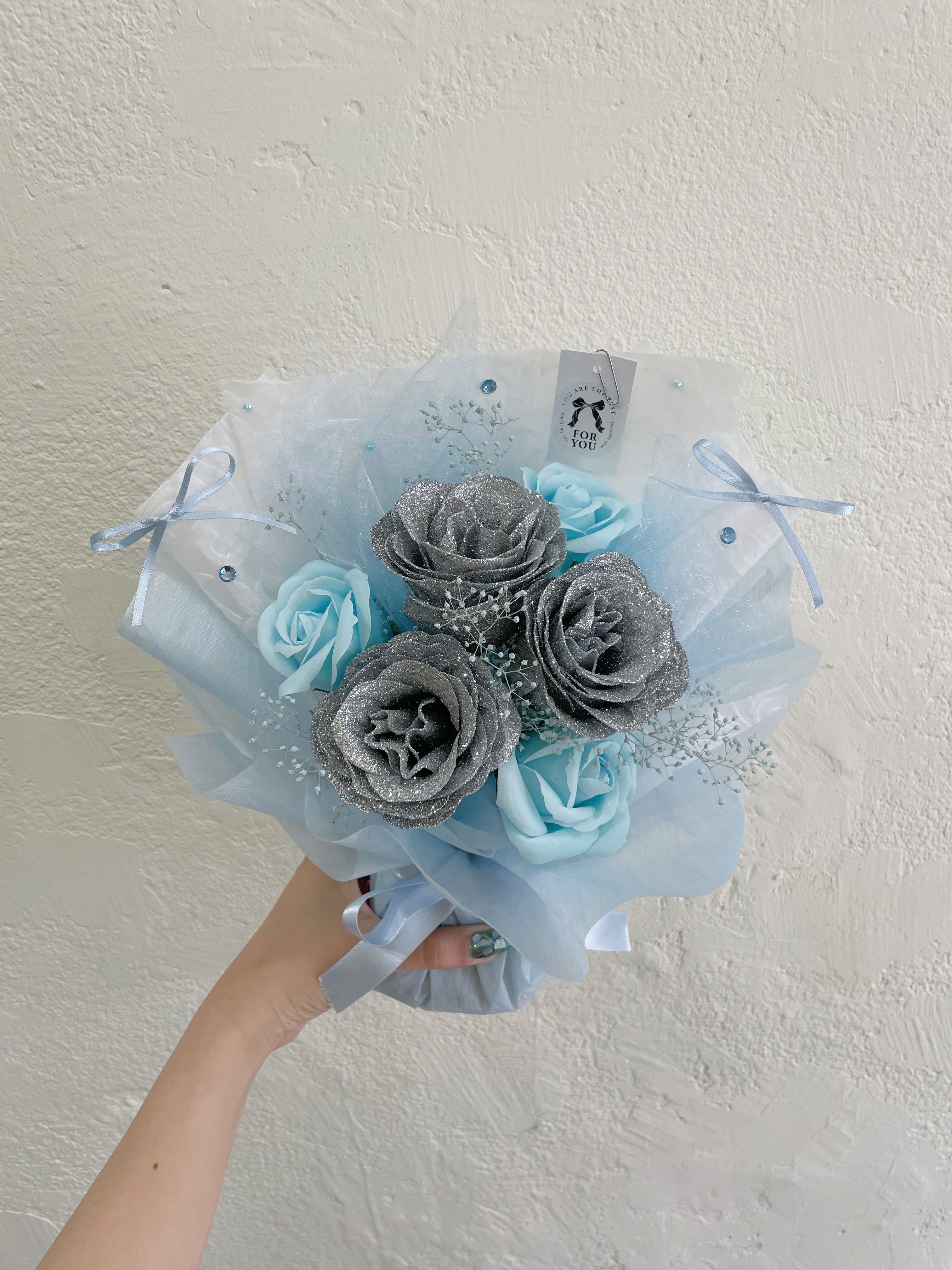グリッターローズ3本と造花ローズ3本の計6本のローズブーケです♬